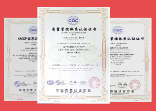 公司順利通過ISO 9001質(zhì)量管理體系認證、ISO22000食品安全管理體系認證、HACCP體系認證